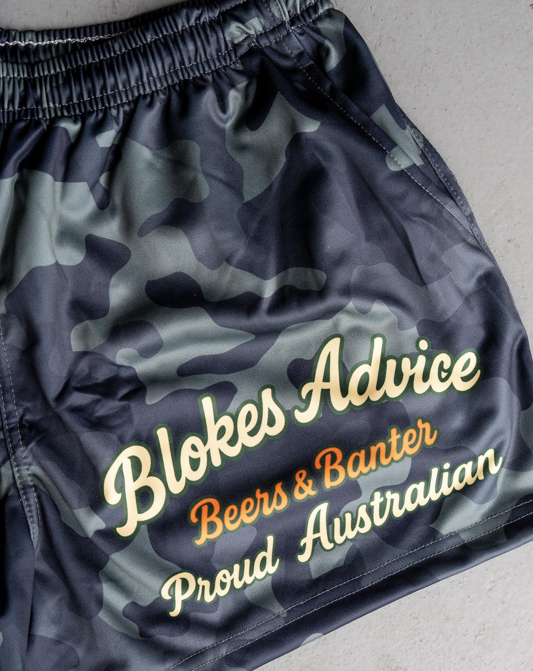 Camo is here with the Beer's n Banter footy shorts with the tan stripes & Proud Australian graphics. The ultimate in casual and comfy...