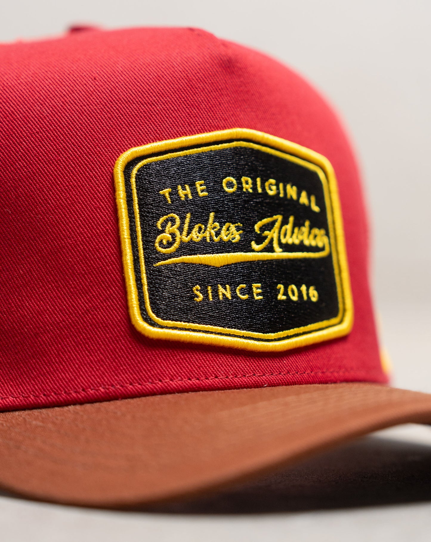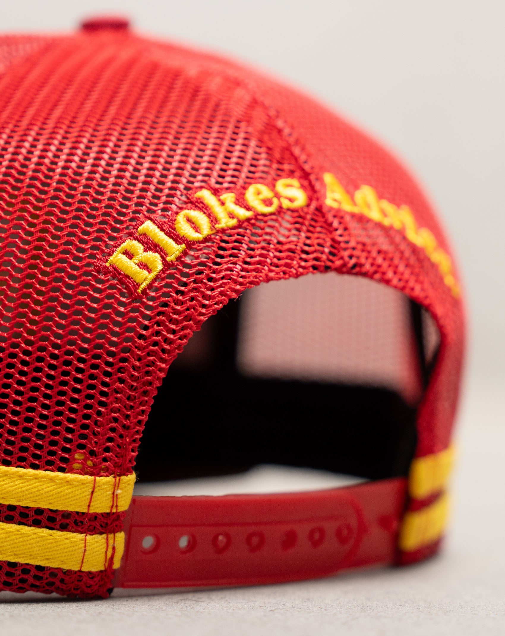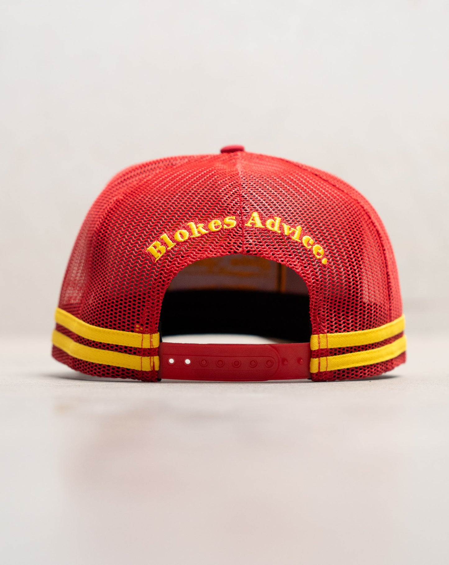 We love a black hat as much as the next man, but they all start looking the same. The Stay Hard Trucker is a bit of astatement for the next time you're down the track or sinking a few pints at the local. Featuring the bold red & yellow colourway with a brown brim, and a woven embroidered patch to finish her off.